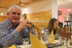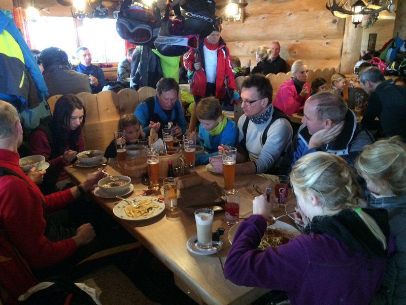 Nach einem reichlichen Frühstück ging es direkt zum Skigebiet Hochoetz. Nach Kartenkauf und warm machen beim Fliegerlied erwarteten uns die gut präparierten Pisten die beinahe alle geöffnet waren. Überraschender Weise gab es kaum Wartezeiten an Liften und so stand dem Schneespaß nichts mehr im Wege. Da es doch sehr kalt war, stürmten, gefühlt alle Skifahrer, in die Kühtaile Alm. Flad und Marion konnten ein paar Tische belegen, so dass doch alle irgendwie unterge-kommen sind. Nach deftiger Hausmannskost wurden „neue“ Skiteams gebildet und auch die noch verbliebenen Pisten abgefahren. Pünktlich am Bus ging´s mit „Holz“ zurück zum Hotel, wo bereits die Jause bereit stand und Bad zum Toben und Sauna lockte. Zum 5 Gänge Abendmenue traf man sich im Speisesaal und hinterher zum UNO spielen in der Bar.