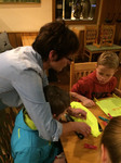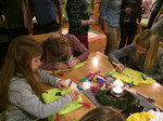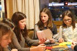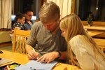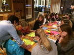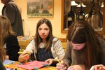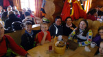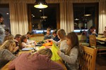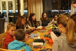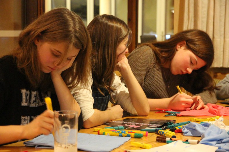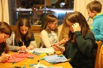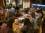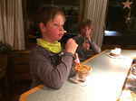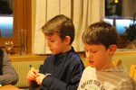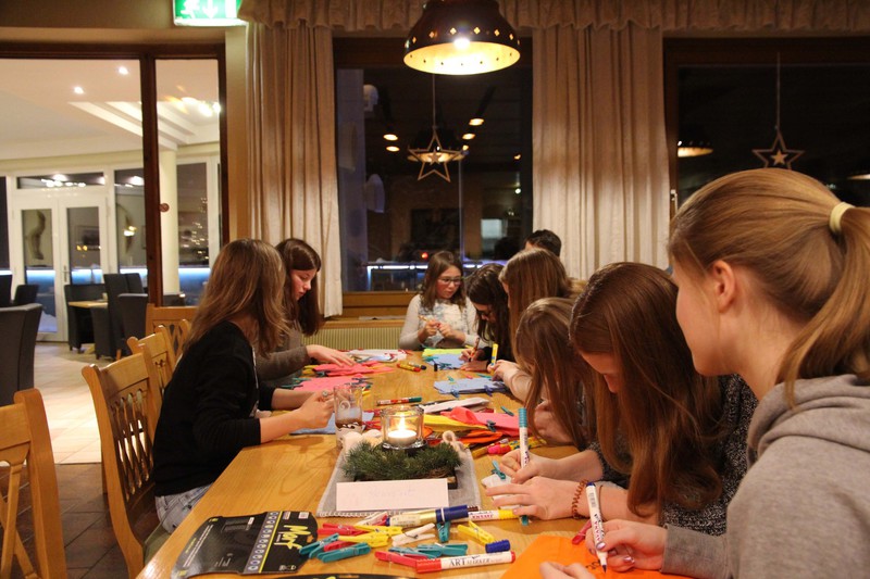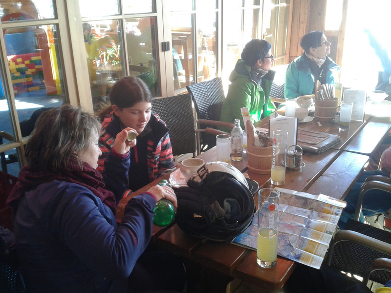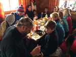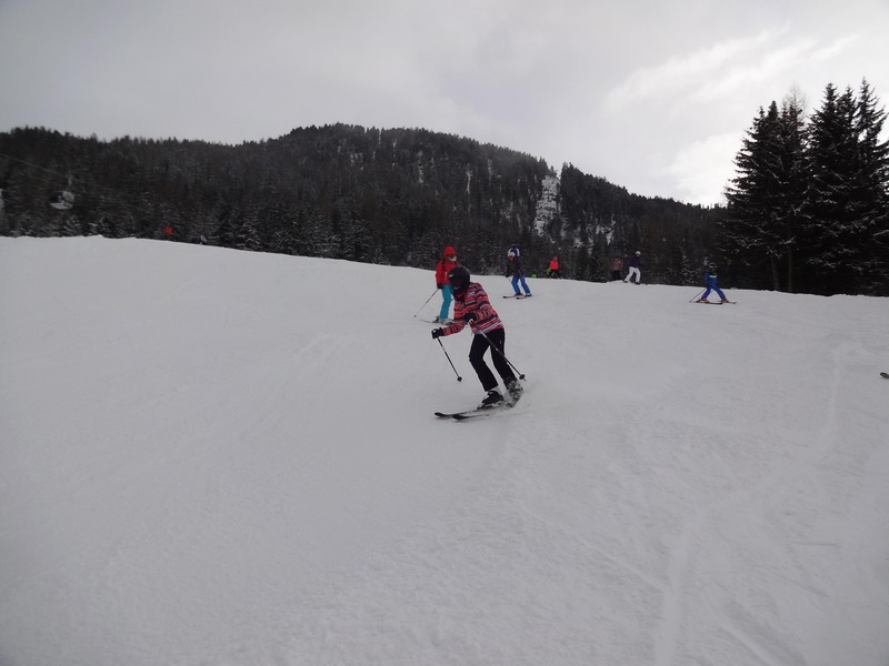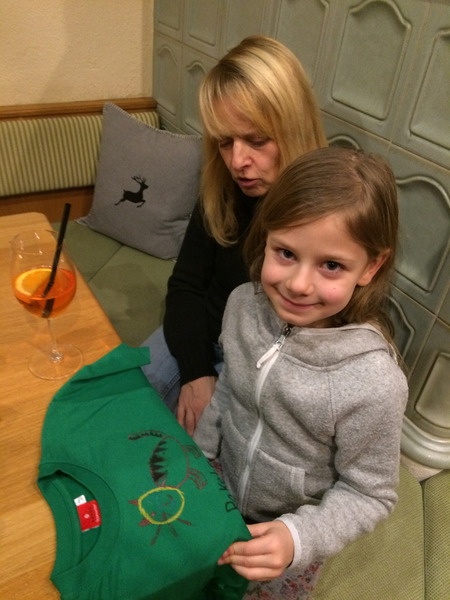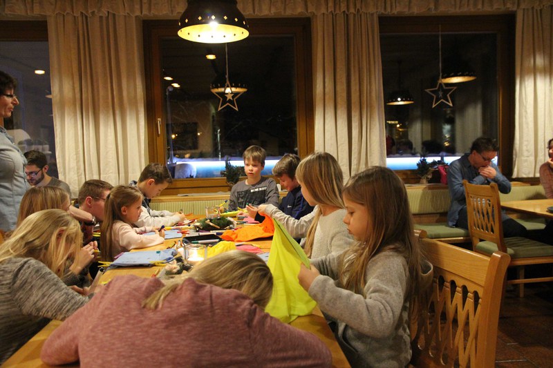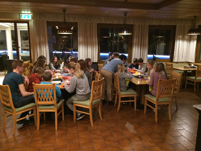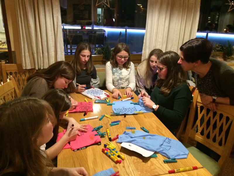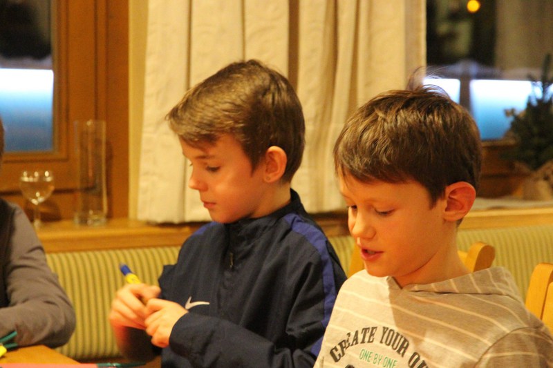 Nächster Tag, gleiches Ritual. Nur mit dem Unterschied dass es über Nacht geschneit hatte und die Pisten in einem super Zustand waren. Durch etwas „Bagschisch“ konnten wir uns in der Alm diesmal etwas bessere Tische sichern. Nach wiederum einem tollen Abendessen war heute kreativ sein angesagt. Alle Kinder durften sich unter verschiedenen Farben ihren „Morf“ (Schlauchschal) aussuchen und diesen dann mit bunten oder glitzernden Farben bemalen. Diese wunderschön gestalteten Schals, konnten sie dann die kommenden Tage noch sehr gut gebrauchen.