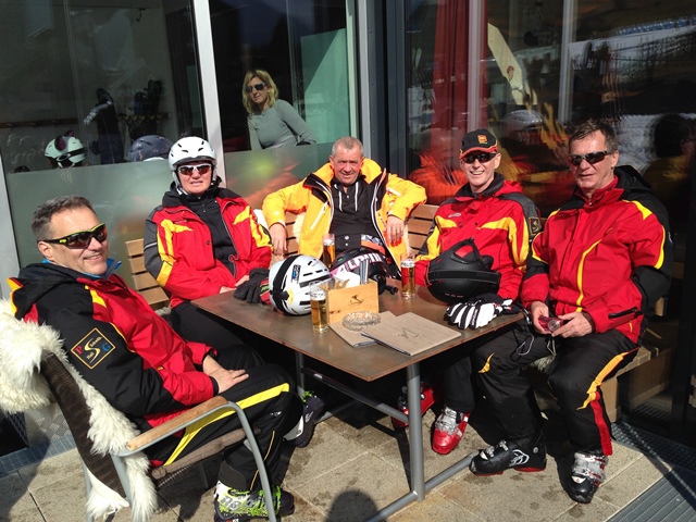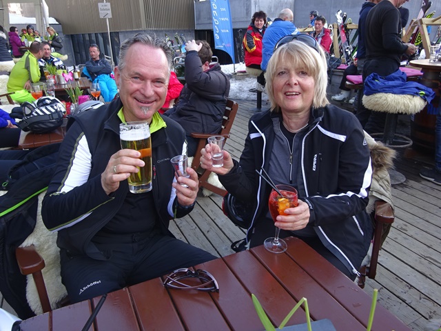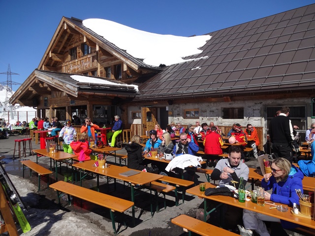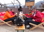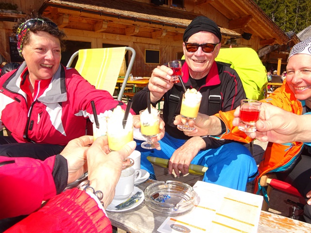 Nach einer letzten schweißtreibenden Kampfabfahrt durch die nun schon sehr zerwühlte und sulzige Weltcupabfahrt gab es nur noch ein Ziel: Spätestens gegen 15.00 die Rodelalm ansteuern um dort einen Liegestuhl zu ergattern! Bei Cappuccino, einer Runde „heißer Oma“ oder einem kühlen Bierchen waren wir schnell wieder erholt.