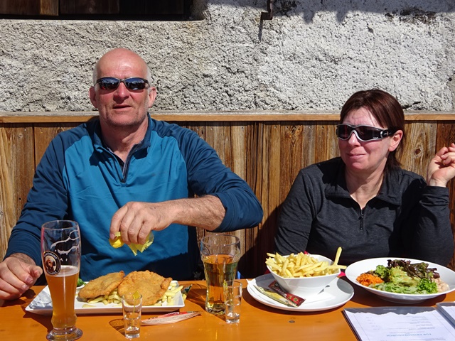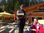 Billys Empfehlung die Mittagspause in der Taja Alm zu machen (die Alm gehört zum Hotel Troschana und liegt oberhalb von St. Christoph) kamen doch einige aus unserer Gruppe nach und so traf man dort den einen oder anderen „Haller“ beim Mittagessen oder beim „Chillen in der Sonne“ an. Das Essen ist übrigens genauso hervorragend wie im Hotel!