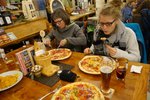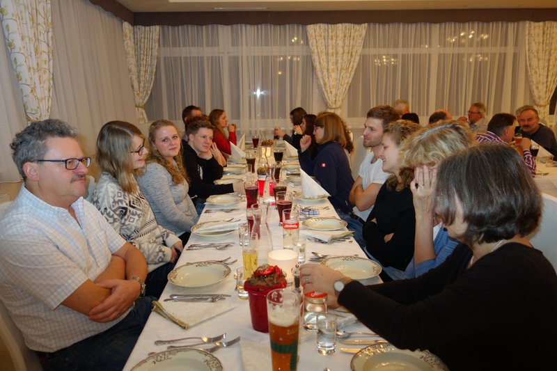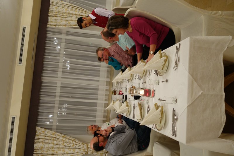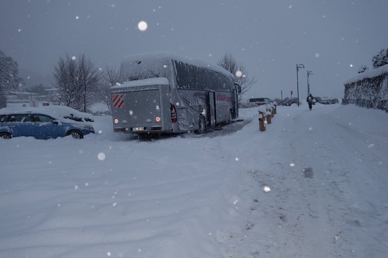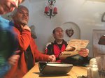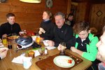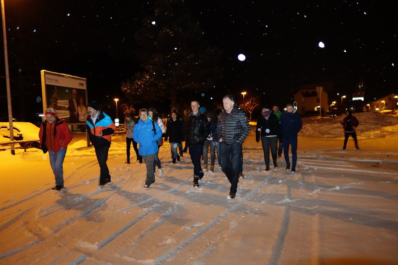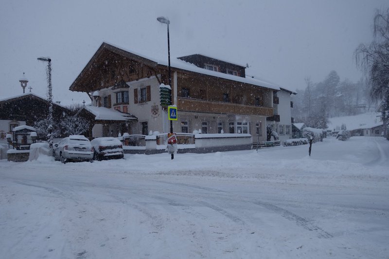 Die Anfahrt im vier Sterne Bus ist abenteuerlicher als erwartet. Nachdem wir zu Beginn der Fahrt schnell vorankommen , wird ab Ulm die Reisegeschwindigkeit aufgrund von starkem Schneetreiben und schneebedeckter Autobahn gedrosselt.Jetzt heißt es entspannen und die sehr langsam vorbeiziehende Winterlandschaft zu genießen. Aufgrund des Zeitverzugs wird zweimal umdisponiert, sodass wir in Füssen beim Olivenbauer, einer empfehlenswerten Pizzeria, Rast machen. Irgendwann, nachdem der Fernpass mit Schneeketten überwunden war, kommt die ganze Mannschaft gut und sicher im Hotel Walzl in Lans an und freut sich über die schönen Zimmer.
