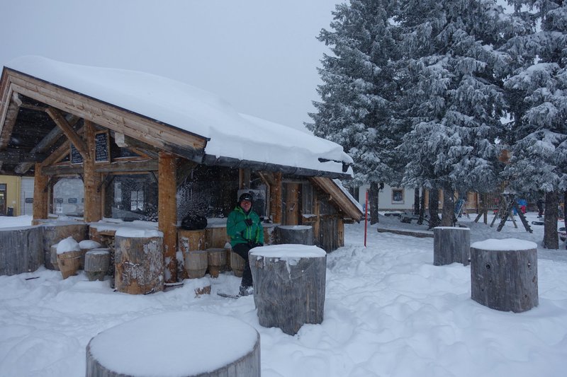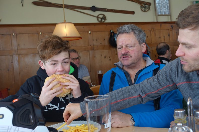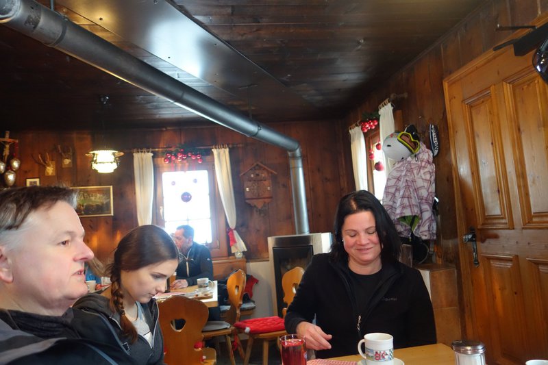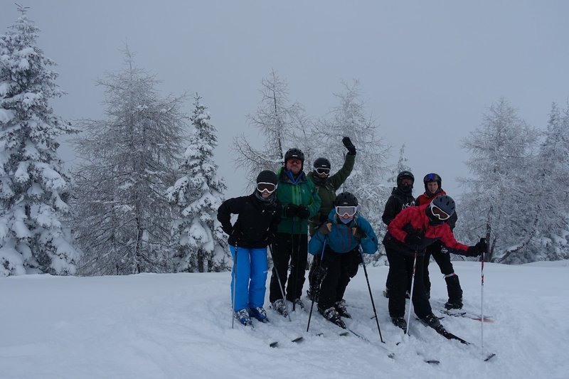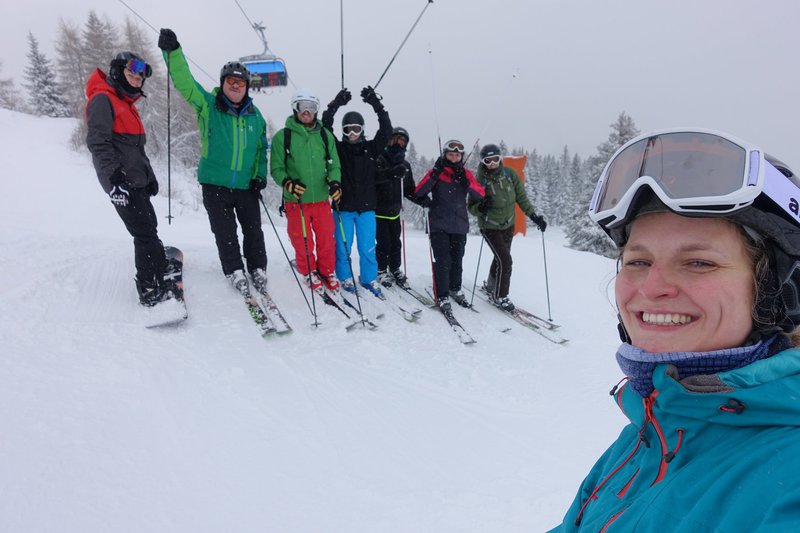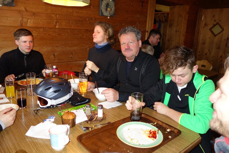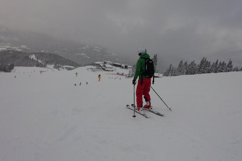 Nach üppigem Frühstück ging es am ersten Tag ins Alpbachtal, ein Gebiet mittlerer Größe. Sicht und Wetter sind wechselhaft, aber das tut einem tollen Skitag keinen Abbruch. Die meisten Teilnehmer müssen nur leichte Erfrierungen in einem offenen Sessellift älterer Bauart erleiden, doch bei den langen Talabfahrten im Gebiet werden zumindest die Oberschenkel schnell wieder warm.