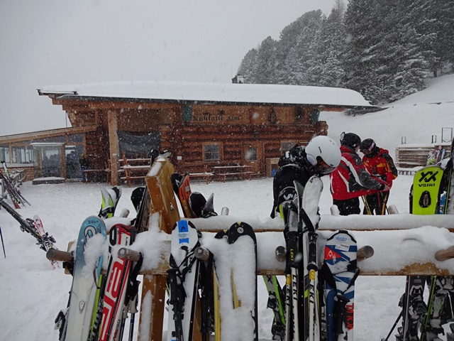 Nach einem reichlichen Frühstück ging es zum Skigebiet Hochoetz. Der Kartenkauf war schnell erledigt und während dessen machte sich die Gruppe beim Fliegerlied auf. Im Skigebiet erwarteten uns die gut präparierten Pisten die allesamt geöffnet waren. Es gab kaum Wartezeiten an Liften und so stand dem Schneespaß nichts mehr im Wege. Auch das Wetter war ganz gut, es war kalt und es schneite immer wieder. Gegen Mittag stürmten, gefühlt alle Skifahrer, in die Kühtaile Alm. Doch wir konnten ein paar Tische belegen, so dass doch alle unserer Gruppe irgendwie untergekommen sind. . Nach deftiger Hausmannskost wurden „neue“ Skiteams gebildet und auch die noch verbliebenen Pisten abgefahren. Pünktlich am Bus ging´s mit „Holz“ zurück zum Hotel, wo bereits eine Jause bereit stand und das Bad zum Toben und die Sauna lockte. Zum wiederum vorzüglichen Abendmenue traf man sich im Speisesaal und anschließend in der Bar.