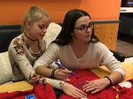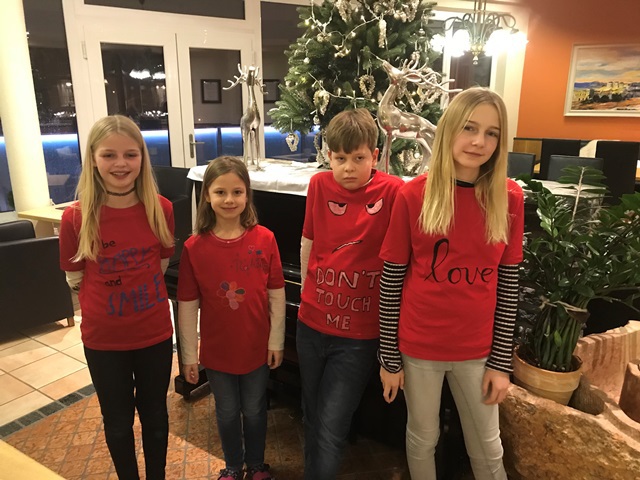 Nächster Tag, gleiches Ritual. Nur mit dem Unterschied dass es über Nacht noch weiter geschneit hatte. Für diesen Tag hatte der Winter mal etwas besonderes im Gepäck: Es war Starkwind angesagt und dieser sorgte in den meisten Skigebieten für Stillstand. Durch die günstige Lage vom Skigebiet Hochoetz konnten dort aber die Lifte und Bahnen laufen. Nur am Nachmittag kam Unruhe auf, als plötzlich nichts mehr ging. Alles stand still, selbst in den Hütten. Ein großflächiger Stromausfall war hier der Grund. Nach einer gefühlten Ewigkeit, vor allem in den Sesselliften, ging aber wieder alles seinen Gang. Die Betroffenen wurden richtig durchgepustet und mussten sich erstmal in den Hütten aufwärmen. Durch das ungemütliche Wetter beschlossen wir etwas früher mit dem Skifahren aufzuhören, schließlich wollte der Wellnessbereich auch genutzt werden. Doch nun stand die Zubringerbahn zum Tal mindestens ½ Stunde still. Ein technischer Defekt war hier die Ursache. Nach dem Essen war heute kreativ sein angesagt. Alle Kinder bekamen ein T-Shirt, das sie nach eigenen Ideen selbst gestalten und bemalen durften.
