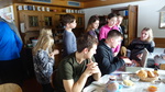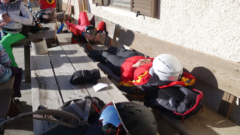 Um 22 Uhr war Nachtruhe und am Sonntag gab es wie jeden Morgen um 8 Uhr Frühstück. Danach ging es bei wunderschönem Wetter auf die Piste und um 11:30 gab es auf der Anratter Hütte Mittagessen. Leider sind Emma und Smilla gestürzt und sind jeweils mit einem Gips aus dem Krankenhaus gekommen.