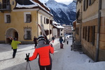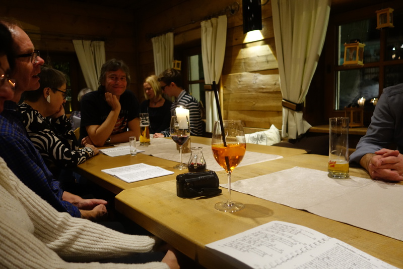 Am nächsten Morgen nach einem reichhaltigen Frühstück vom Buffet, starten wir in Richtung Schweiz nach Scoul. Die Schweiz als Ziel der Post SG liegt schon länger zurück und so war dieses Skigebiet den meisten unbekannt. Nur Susi, Patrick und Alexander kannten sich hier wunderbar aus, da sie hier schon mehrmals waren. Dies hat sich unsere Truppe gleich zu nutzen gemacht und haben die drei als Guide eingespannt. Das Skigebiet ist nicht sehr groß aber die Hänge sind breit und gut präpariert. Es gibt viele einfache Abfahrten die zum Genussskifahren einladen aber auch ein paar steilere und schwierigere Hänge. Es gibt auch genügend Möglichkeiten für Abfahrten in nicht präparierten Pisten. Es war recht kalt, aber entgegen aller Wetterprognosen war es ein schöner Skitag mit guter Sicht und auch mit sonnigen Abschnitten. Zum Aufwärmen und zur Mittagspause sind wir in die Alpetta Hütte. Sehr gemütlich freundliches Personal und das Essen war auch gut, halt stolze Schweizer Preise. Fast pünktlich kurz nach 16 Uhr konnten wir starten, die Reiseleitung war mit Punktlandung kurz vor 16 Uhr am Bus. Im Hotel war wieder Sauna angesagt. Den Saunagang haben wir (Claudia, Armin, Ralf und Corinna) mit einer Flasche Sekt begossen. Nach dem Abendessen mit wieder drei unterschiedlichen Menüs zur Auswahl ging es anschließend zum Hüttenabend mit Gesang. Die Hotelleitung hatte uns hierfür ein kleines Nebenhaus mit Bar und Kellner zur Verfügung gestellt. Peter mit Gitarre und Ralf mit Keyboard ausgerüstet, spielten auf und so wurde das berühmt berüchtigte Liederbüchlein der Post SG rauf und runter gesungen. Skifoan von Wolfgang Ambross durfte natürlich nicht fehlen. Nach viel Spaß und reichlichem schmieren der Sangeskehlen wurde der Abend noch gekrönt durch ein paar Witze, die Hannes zum Besten gab. Anschließend ging es müde und zufrieden ins Bett.