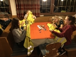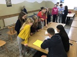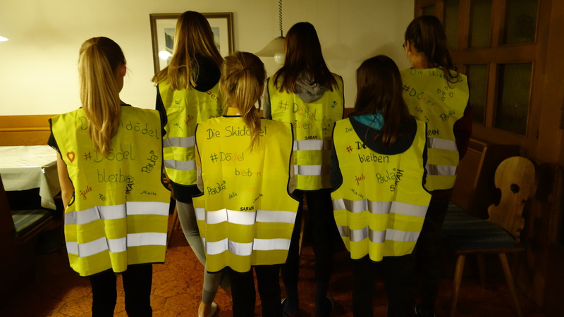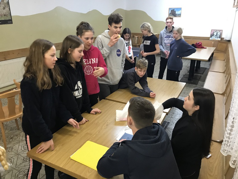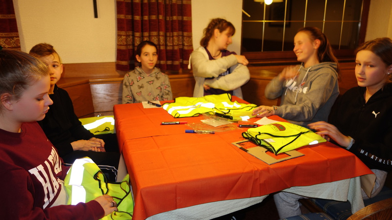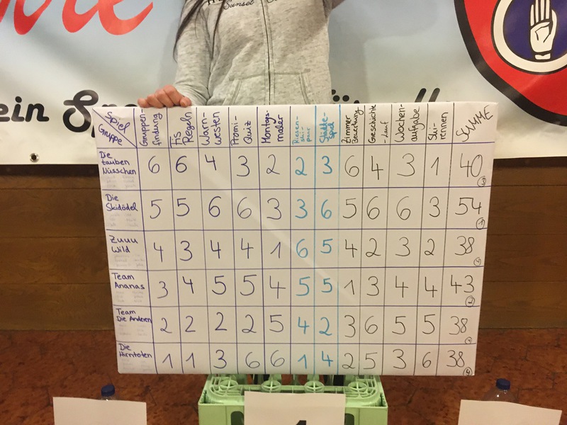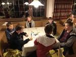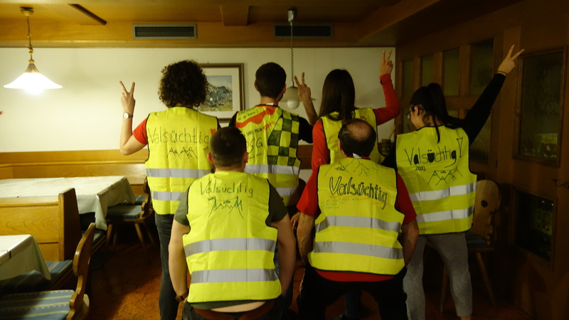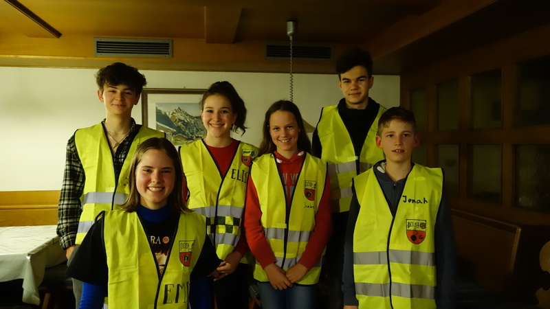 Am Samstag, der 22.02.2020 um 8:30 Uhr ging es endlich los. Nach Sieben-Stündiger Fahrt mit 2 Pausen, Zimmereinteilung und voller Aufregung und Spaß kamen wir endlich in Vals am Gasserhof an. Bevor alle aussteigen durften, mussten alle noch im Bus aufräumen, da durchs viele essen zu viel Müll entstanden war. Nach ca. 20 Minuten aufräumen konnten dann endlich alle aus dem Bus zum Skiverleih stürmen und sich danach in ihren Zimmern einrichten. Bevor alle Spaghetti mit Tomatensoße bekamen, wurden noch ein paar grundlegende Regeln und Informationen bekanntgegeben (wie zum Beispiel die Bettruhe um 22:00 Uhr). Als die Tische abgeräumt und gewischt waren, hatten alle Freizeit. Um 20:00 Uhr trafen wir uns im untersten Stock im Aufenthaltsraum. Durch die Gruppenfindung konnten die Teams schon erste Punkte holen. Durch Aufblasen von Luftballons und anschließendes zertreten, hatte jeder einen Zettel, auf dem stand, wie man seine Gruppe finden sollte. Als das geschafft war, mussten Namen für jede Gruppe her. Also ging Tasi herum und schrieb die Namen der Gruppen auf. Die Gruppennamen waren: Zuuu Wild; Die Skidödel; Die Anderen; Die Tauben Nüsschen; Die Hirntoten und Team Ananas. Im Speisesaal setzten wir uns in den Gruppen zusammen an die Tische. Uns wurden Warnwesten ausgeteilt die wir mit dem PSG- Zeichen, unserem Namen und einem Gruppen Motto bemalen durften.