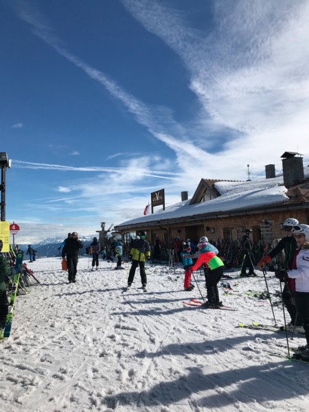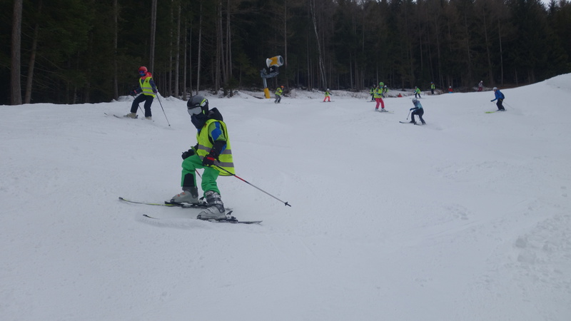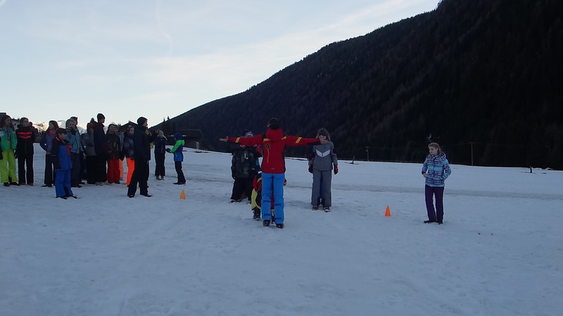 Am nächsten Tag war um 7:30 Uhr aufstehen angesagt. Frühstück folgte um 8:00. Da die Anzeigetafel der Mini-Olympiade schon ausstand, konnte man sehen, dass die Tauben Nüsschen und die Skidödel zusammen führten. Als dann alle bereit für die Piste waren, trafen wir uns vor dem Haus und die Betreuer lasen vor, wer bei wem in der Gruppe ist. Dann ging es los. In den nun entstandenen Gruppen liefen wir zum Skiverleih um dort Ski oder Board, Stiefel und Boardfahrer zuholen. Als das erledigt war gingen wir zu der Gondel und fuhren mit ihr hoch auf den Schnee auf den Berg. Jetzt war es so weit, wir schnallten unsere Ski oder unsere Boarde an und fuhren los. Um 11:30 Uhr trafen sich alle Gruppen zum Mittagessen auf dem Jochtal. Jeder bekam von seinem Betreuer eine Essenskarte um ein warmes Mittagessen zu holen. Fleischgerichte wie z.b Schnitzel musste man 4 Euro dazu bezahlenL. Nach dem Mittagessen ging es dann endlich wieder auf die Piste. Um 14:30 Uhr fuhren wir dann zur Ochsenalm, um Kaffee oder „Heiße Schoki mit Sahne“ oder andere Getränke zu trinken. Wer wollte, konnte noch bis 15:30 Uhr fahren, alle anderen gingen wieder zurück zum Skiverleih, um dort Ski- oder Snowboard in dem für unsere Gruppe reservierten Raum abzustellen. Anschließend gingen sie zurück zum Gasserhof. Die anderen kamen dann später nach. Zum Abendessen gab es heute Pommes mit Hähnchen. Die Gruppenaktion an diesem Tag war das Promi-Quiz. Es wurden 3 Bilder von unterschiedlichen Promis gezeigt, und dann ein Audio abgespielt. Man hörte eine Stimme. Diese mussten wir einem Promi von den 3 Bildern zuordnen. Dafür mussten wir die Namen von den Promis natürlich auch kennen. Um 22:00 Uhr war dann wieder Bettruhe.