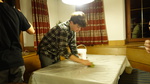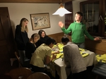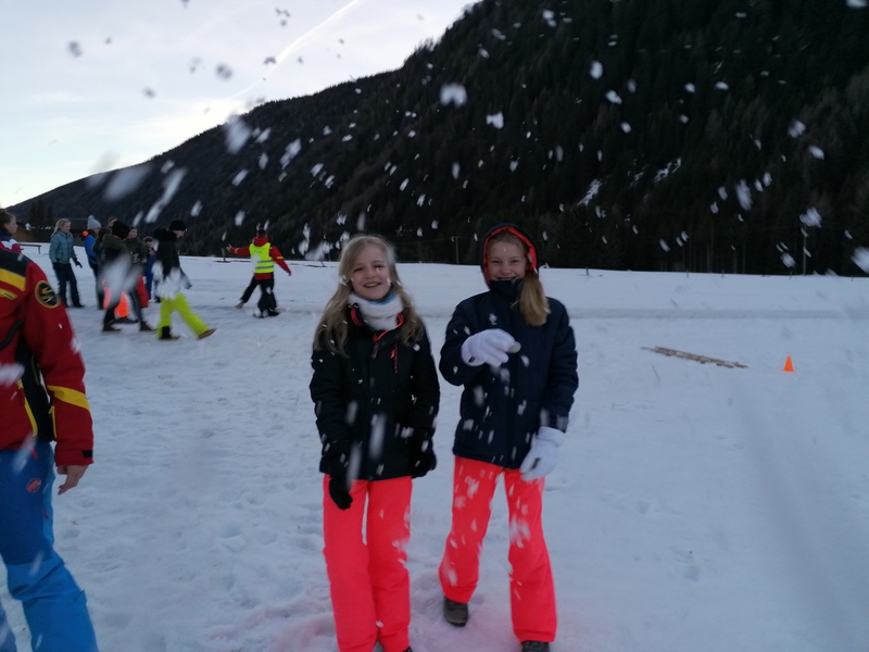 Mittwoch: Am nächsten Morgen waren wir alle besonders verschlafen, da wir die gefühlt die ganze Nacht gefeiert hatten. Trotzdem war um 8:00 Uhr frühstücken. Um 9:00 Uhr ging es dann wieder los zum Skiverleih und im Anschluss zur Gondel. Als wir oben unsere Skier und Board anschnallten, waren wir sehr aufgeregt, denn heute war das Skirennen. Wir fuhren erst eine Weile, bis sich alle Gruppen an der vorbereiteten Piste trafen. Nach Alter und Geschlecht geordnet fuhren wir los. Nach dem Rennen fuhren wir zur Hütte, um dort wieder Mittag zu essen. Je später es wurde, um so mehr von uns waren geschafft und gingen zurück zum Gasserhof. Die Pistenzustände verschlechterten sich ebenfalls, so kam es, dass sich schließlich wieder alle im Haus einfanden. Um 18:30 Uhr gab es dann Kaiserschmarren mit Beerenmarmelade oder Zucker. Als wir nach dem Abendessen unseren Tisch freigeräumt und geputzt hatten war wieder bis 20:00 Uhr Freizeit. Als wir uns unten im Aufenthaltsraum trafen, schauten wir uns erstmal die Ergebnisse von der Wochenaufgabe an. Jede Gruppe mußte 3 Bilder zu verschiedenen Themen machen. Im Anschluss spielten wir das Geschichtenlaufspiel. Bei diesem mussten sich zwei Gruppen gegenüber plazieren und jedem wurde eine Person oder ein Tier zugeordnet. Nun wurde eine Geschichte vorgelesen, hörte man seinen Namen, musste man gegen die Person gegenüber rennen. Der, der schneller wieder auf seinem Platz saß, bekam den Punkt. Nach völliger Anstrengung, Spaß und einem kaputten Stuhl, der bei dem Spiel auseinandergebrochen ist, machten wir Aufnahmen für den Abspann unseres Films. Peter hängte eine große grüne Leinwand auf, jeder machte eine Pose, immer in der Reihe, und zum Schluss sogar die Betreuer, die ziemlich einfallsreich waren. Fertig und total erschöpft von dem langen Tag, gingen wir schließlich auf unsere Zimmer, da wenig später, um 22:00 Uhr, Bettruhe war.