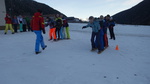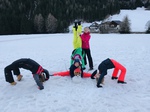 Montag: Um 7:30 Uhr wurden wir wieder geweckt. Alle waren noch etwas verschlafen, als wir uns um 8:00 Uhr im Speisesaal zum Frühstück trafen. Wir hatten, so wie am vorigen Tag, wieder Tee, Brötchen, Marmelade, und ähnliches aus der Küche geholt und fingen an zu essen. Als wir mit dem frühstücken fertig waren gingen wir auf unsere Zimmer, um uns fertig für die Piste zu machen. Fertig angezogen trafen wir uns dann um 9:00 Uhr vor dem Gasserhof. Oben am Berg angekommen fuhren wir los., durch den Funpark, schwarze, rote und blaue Pisten, alles war dabei. Zur Mittagszeit gingen wir auf die Hütte, um uns zu stärken. Jeder bestellte etwas anderes. Gut gestärkt fuhren wir den Berg auf Ski und Board wieder runter. Um 14:30 Uhr sahen wir uns wieder auf der Anratter Hütte, um dort eine kleine Pause einzulegen. Hier wurde ein Teilnehmer von den Anderen so ,it den Füßen im Schnee eingegraben, dass er erst nach einigen Bemühungen der Betreuer wieder rauskam. Danach fuhren wir ins Tal. Wir kamen erschöpft am Gasserhof an. Nun hatten wir noch etwas Zeit, bis wir uns hinter dem Gasserhof für ein Gruppenspiel trafen. Fünf von den sechs Gruppenmitgliedern stellten sich auf zwei lange Holzbretter, die Skier darstellten. Nun ging es um Geschwindigkeit, welches Team war schneller auf der anderen Seite? Da war Gruppenkoordination gefragt. Danach trafen wir uns wieder im Speisesaal, es gab Gulasch mit Nudeln. Nach dem Abendessen räumten wir unsere Tische ab und putzten sie. Später trafen wir uns im Aufenthaltsraum, um dort Spiele zu spielen. Heute war das Länderspiel angesagt. Die Betreuer erklärten und das Spiel und dann ging es schon los. Wir rannten durch das ganze Haus. Treppen hoch und Treppen runter und beantworteten die Fragen, in der Hoffnung, die meisten Punkte zu bekommen. Als wir dann auf unsere Zimmer gingen, um zu schlafen freuten uns schon auf den nächsten Tag: Fasching.