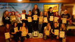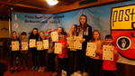 Auch am Donnerstag wurden wir wieder um 7:30 Uhr geweckt. Wie an jedem Tag trafen wir uns nach dem Frühstück vor dem Gasserhof und liefen zum Skiverleih. Wir zogen unsere Schuhe an, nahmen Ski und Stöcke oder Snowboard und trafen uns vor dem Skiverleih in unseren Gruppen. Alle liefen wieder zum Lift und führen auf den Berg. Das Wetter war heute herrlich und so konnten viele km im Schnee zurücklegen. Zum Mittag fuhren wir wieder mit dem „Handschuhreißer“ zur Jochtalhütte und aßen zu Mittag. Die Woche forderte ihre Tribute und so fuhren manche zurück zum Gasserhof. Dadurch würden die Gruppen etwas anders gemischt und noch kräftig gefahren. Am Abend trafen wir uns dann wieder zum Abendessen. Es gab Pizza. Danach hatten wir etwas Freizeit und nutzten diese zum Packen, denn am nächsten Tag ging es ja wieder zurück nach Hause. Um 20:00 Uhr öffneten die Betreuer die Tür zum Speisesaal und alle setzten sich Kreuz und quer an die Tische. Es war schon eine Siegertribühne aufgebaut und auf einem Tisch lagen überall Geschenke. Zuerst gab es die Siegerehrung vom Skirennen. Als erstes wurde die Altersklasse 10-12 vorgelesen. Danach die Gruppe der Boarder und dann die Altersklasse von 13-16. Und zum Schluss noch die Betreuer. Jeder erhielt eine Urkunde. Die Personen die auf dem Treppchen standen, bekamen eine Medaille. Der dritte Platz Bronze, der zweite Platz Silber und der erste Platz Gold. Danach kam die Siegerehrung der Mini-Olympiade. Es gab einen ersten Platz, einen zweiten, einen dritten, und drei vierte. Alle durften sich dann an dem Geschenketisch etwas aussuchen. Bilder wurden auch noch vor dem Plakat von der POST-SG gemacht.