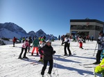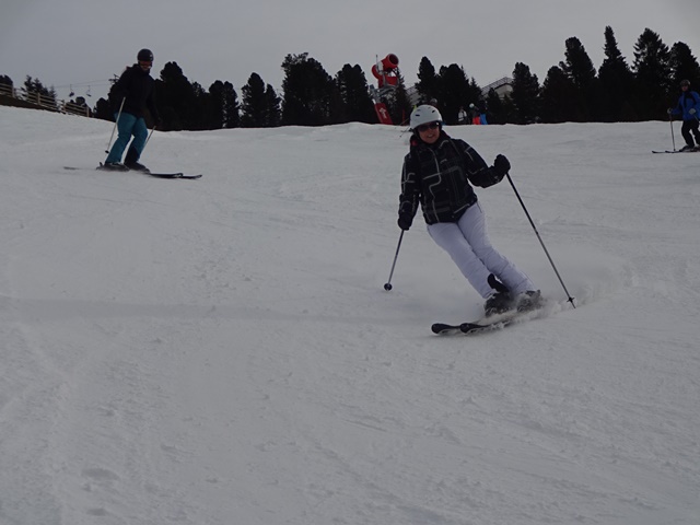 Am nächsten Tag, ausnahmsweise mit bedecktem Himmel, ging es zum Skigebiet Hochoetz da man hier auch bei schlechteren Bedingungen gut Skifahren kann.