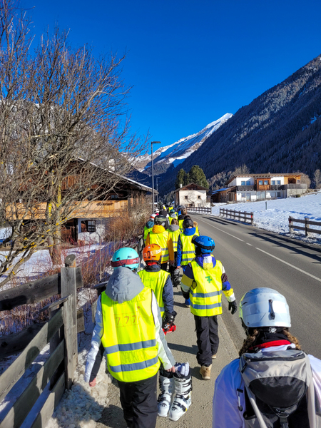 Als wir alle am Schenkenseeparkplatz angekommen waren, haben wir uns erstmal von unseren Eltern verabschiedet sind anschließend losgefahren. Um 18:00 Uhr sind wir nach einer anstrengenden Fahrt im Gasserhof angekommen. Zuerst waren wir erst einmal beim SportGatterer, unsere Skimaterialien auszuleihen und abzustellen. Das Abendprogramm bestand im finden unserer Mini-Olympiaden Gruppen und das bemalen der Warnwesten, die wir zum Skifahren anzogen. Ab diesem Tag wurden auch von den Betreuern fleißig Bollen gesammelt. Bollen bekommt man z.B. wenn ein Mitarbeiter die Regeln bricht, auf der Piste hinfällt oder etwas vergisst etc.