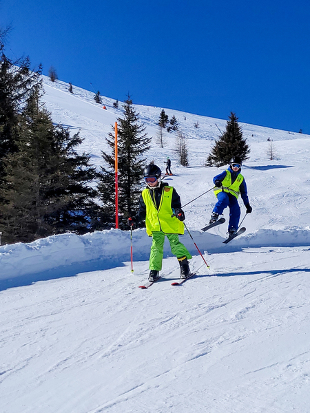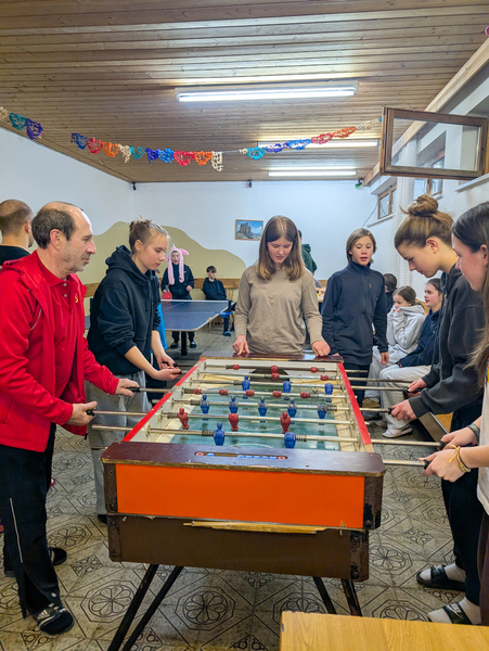 Nachmittags gab es dann ein großes Geländespiel auf der Piste in den Mini-Olympiaden-Gruppen in dem es darum ging so viel Aufgaben wie mögliche zu lösen wie z.B. „Macht ein Foto vor einem Schild, das auf eine schwarze Piste hinweist“. Am Abend war die Siegerehrung des Skirennens und von der Mini-Olympiade.