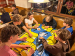 Am Mittwoch war das Ski/Bordrennen. Die Piste war sehr vereist. Von Jung nach Alt wurde gestartet und jeder ist zweimal gefahren. Es wurde in fünf Kategorien gefahren Ski 2, Bord 2, Ski 1, Bord 1 und die Betreuer. Am Abend haben wir das Emoji- Songquiz gespielt. Das Tischcurling war witzig. Da war ein kleiner Curlingkreis auf dem Tisch und man musste mit den Minicurls möglichst nah an den roten Kreis schieben.