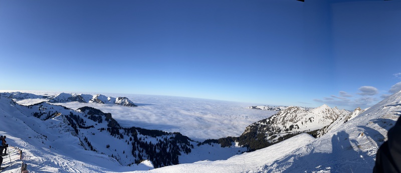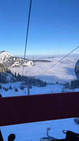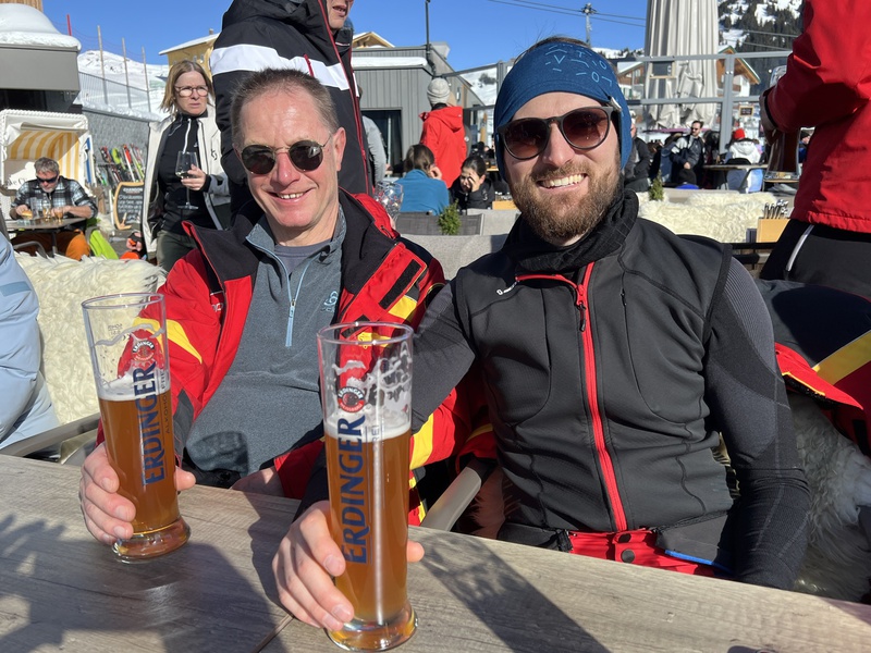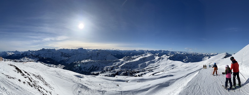 Mit der Mellaubahn ging es dann hoch ins Skigebiet. Dort erwartete uns strahlender Sonnenschein und genügend Schnee, dass sich uns ein wunderbarer Skitag ankündigte. Die meisten sind gleich mit der Gipfelbahn hoch und ins Skigebiet Damüls gewechselt. Dort standen zahlreiche Pisten in allen Schwierigkeitsgraden zur Verfügung. Teilweise recht steile Abfahrten, die von den Skifahren entsprechend Können und Kondition abverlangt haben. Die Bedingungen waren über den gesamten Tag hervorragend. Die Traumhafte Berglandschaft des Bregenzer Waldes lässt keine Wünsche offen. Bei strahlendem Sonnenschein und angenehmen Temperaturen konnte man die kulinarischen Angebote in den zahlreichen Hütten und Restaurants oft im Freien genießen. All dies waren beste Voraussetzungen für einen gelungenen Skitag. Die Zeit verging wie im Fluge und so nutzte fast jeder den Tag bis zur letzten Gondel. Mit der Mellaubahn ging es dann zurück zur Talstation in Mellau wo Günter bereits am Bus gewartet hat. Das wichtigste es sind alle heil und unversehrt wieder am Bus angekommen. Man konnte sich umziehen und dann ging es noch in das M1 Restaurant und Bar an der Talstation in Mellau zum Ausruhen, etwas essen oder in die Bar zum Apresski. Dies wurde rege genützt.